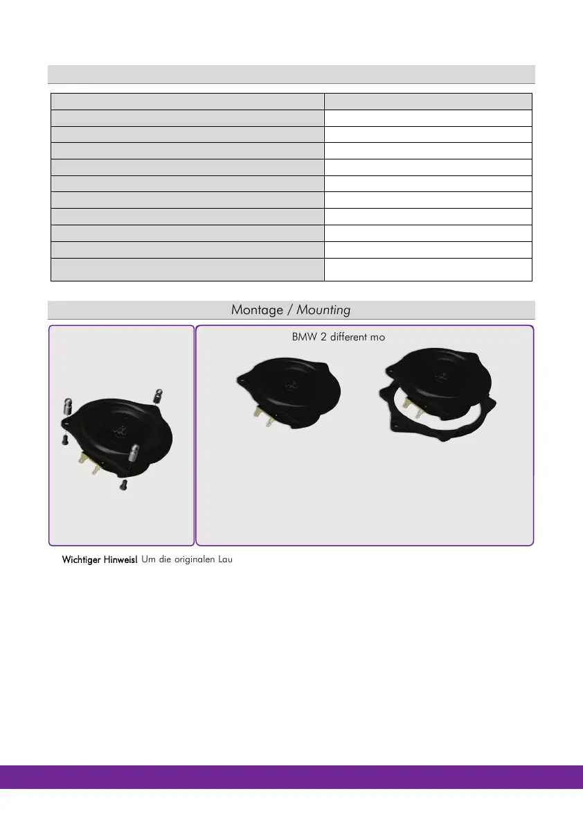 Wichtiger Hinweis! Um die originalen Lautsprecher zu ersetzen, müssen Türverkleidungen sowie teilweise weitere