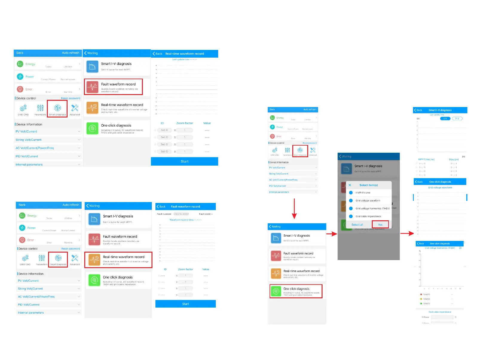 Check PV voltage/current, string voltage/current, ACvoltage/current/power/frequency,
