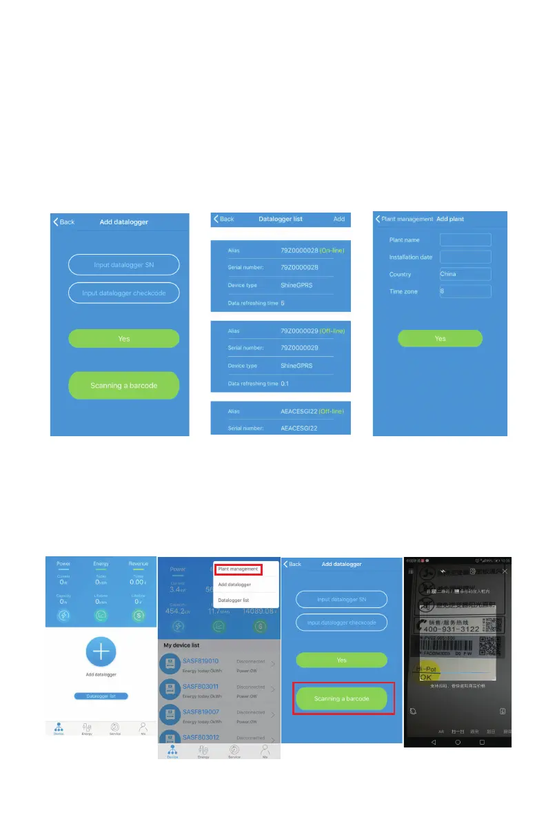 2> User can add datalogger,check datalogger and add plant by click“+”button at the top