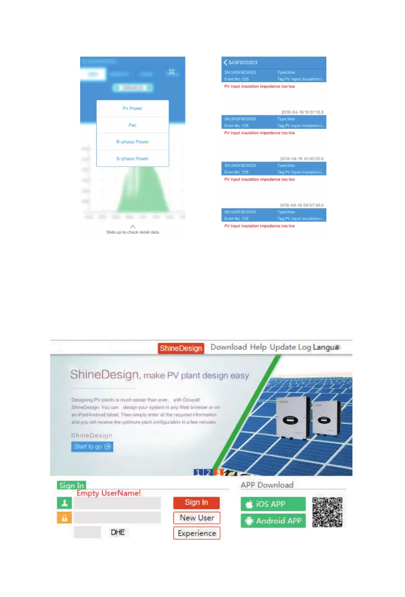 4> Data page: user can see the PV power, voltage, current, R phase power, S phase