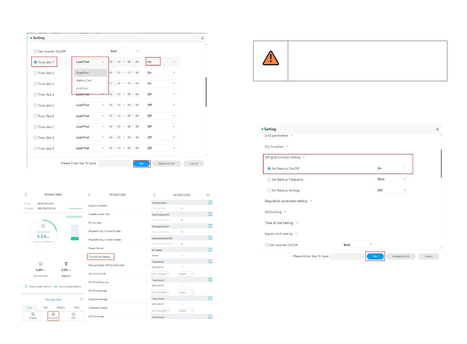 Step 2. Select off-grid function setting > Set Backup On/Off > On > Yes.