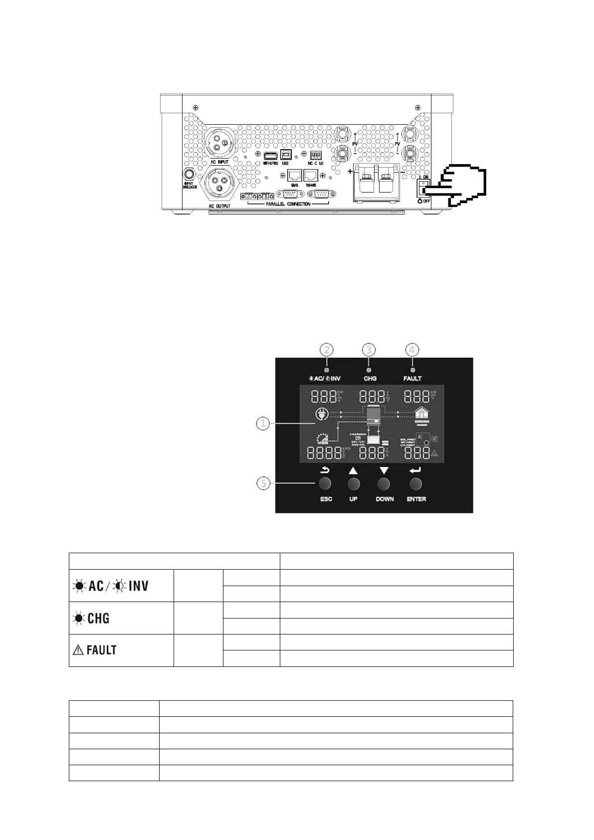The operation and display panel, shown in below chart, is on the front panel of the inverter. It includes