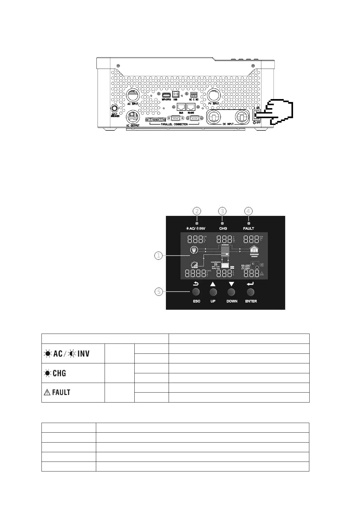 The operation and display panel, shown in below chart, is on the front panel of the inverter. It includes