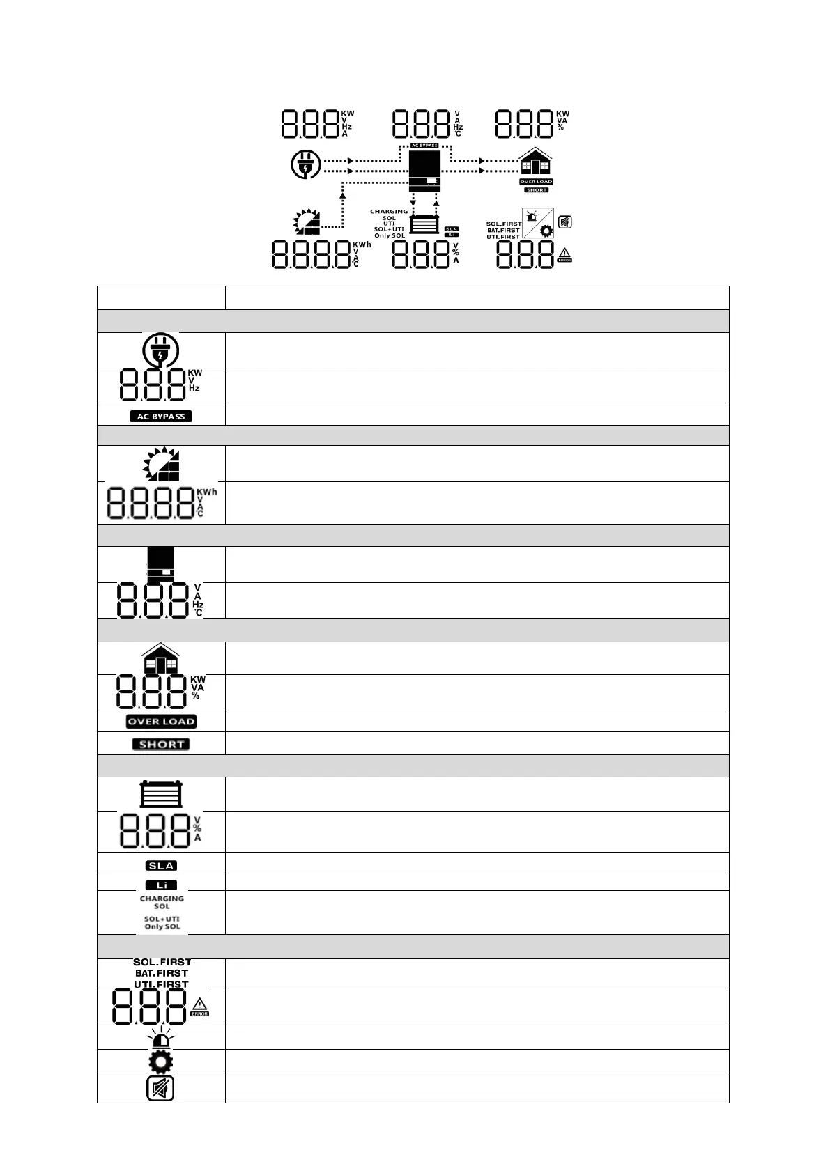 Indicate output source priority: solar first, utility first, SBU mode or SUB mode