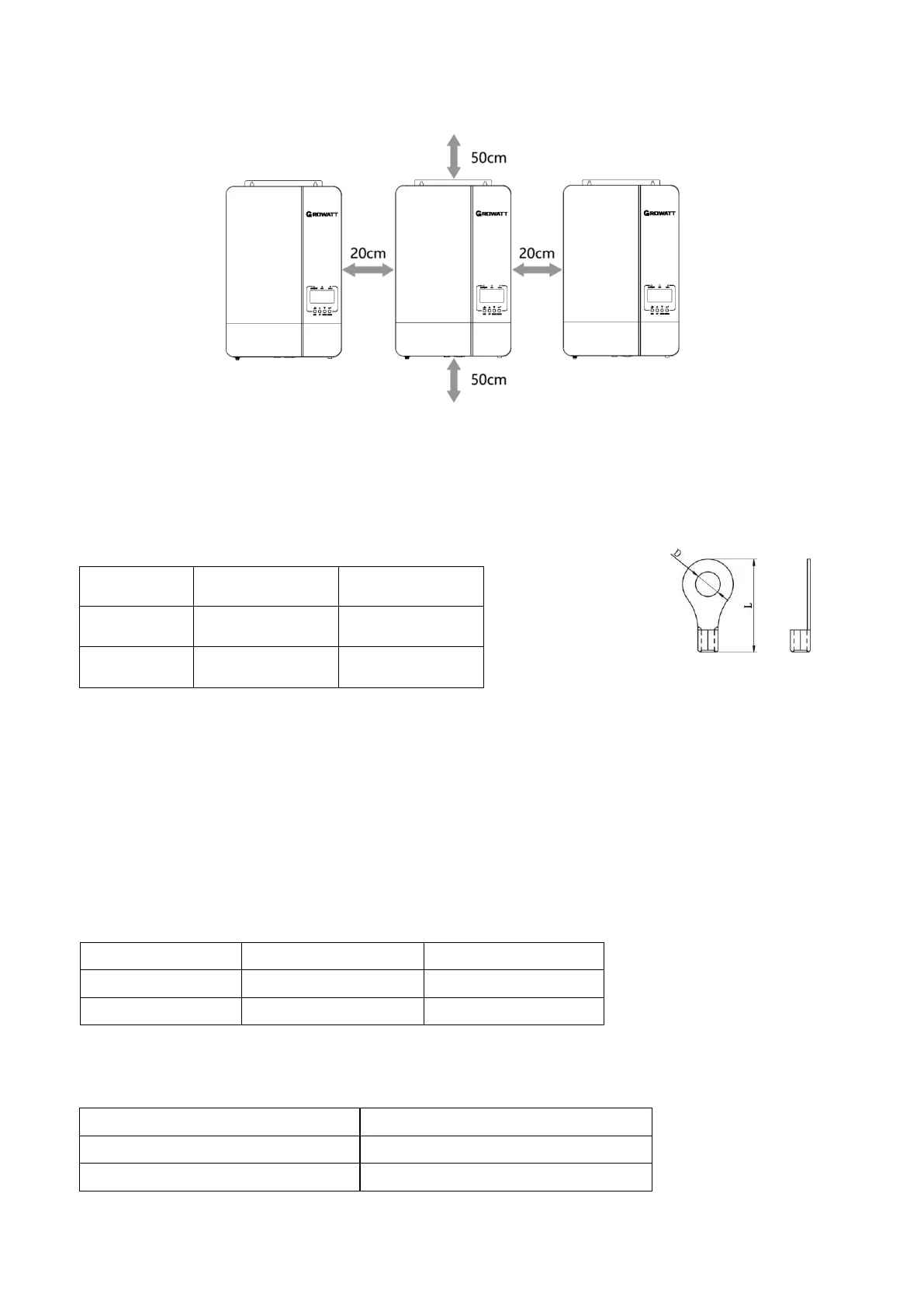 Recommended battery cable and terminal size for each inverter: Ring terminal: