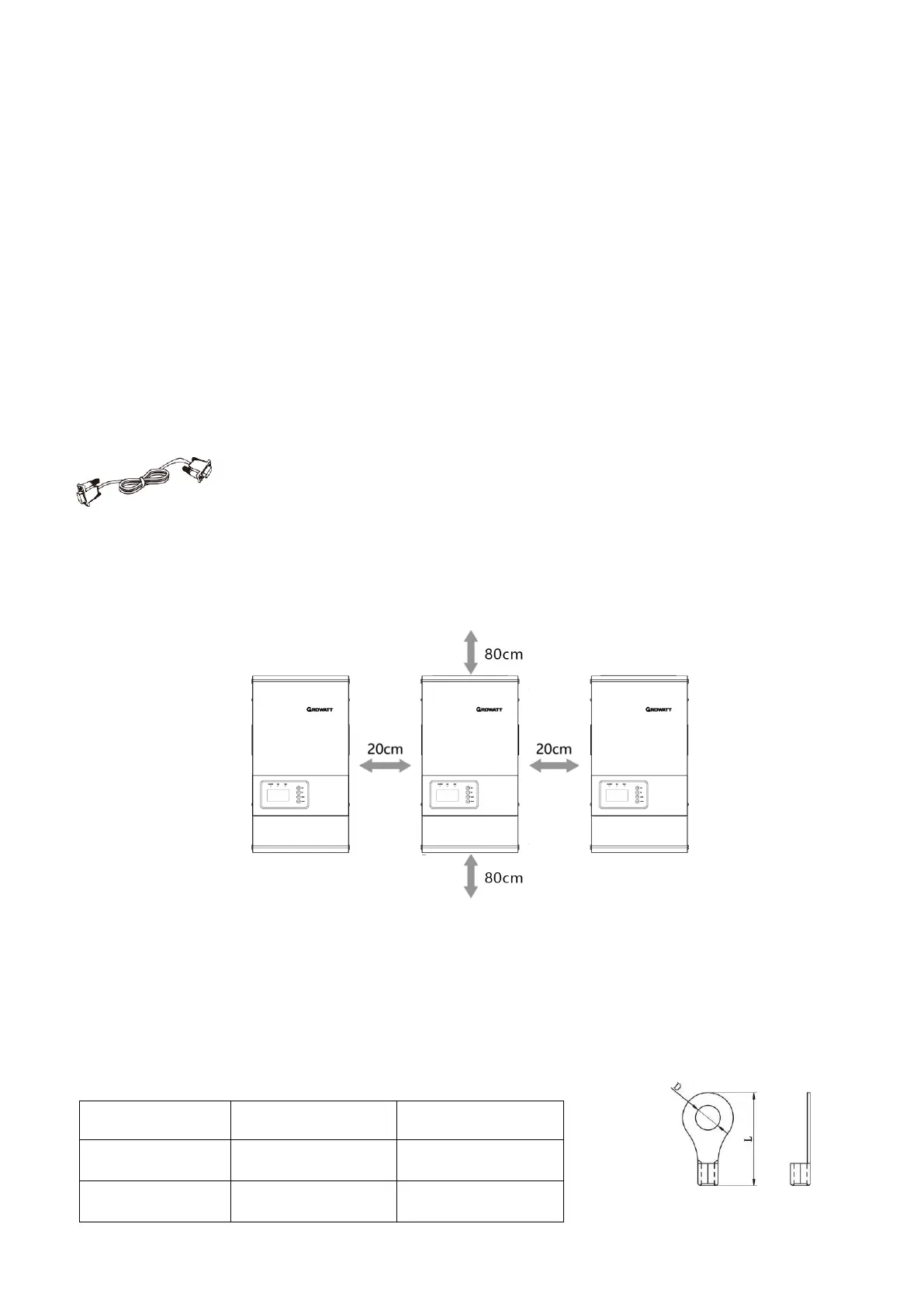 Recommended battery cable and terminal size for each inverter: Ring terminal: