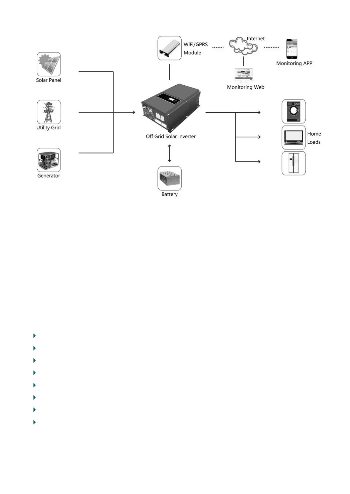 The whole system also need other devices to achieve complete running such as PV modules, generator, or