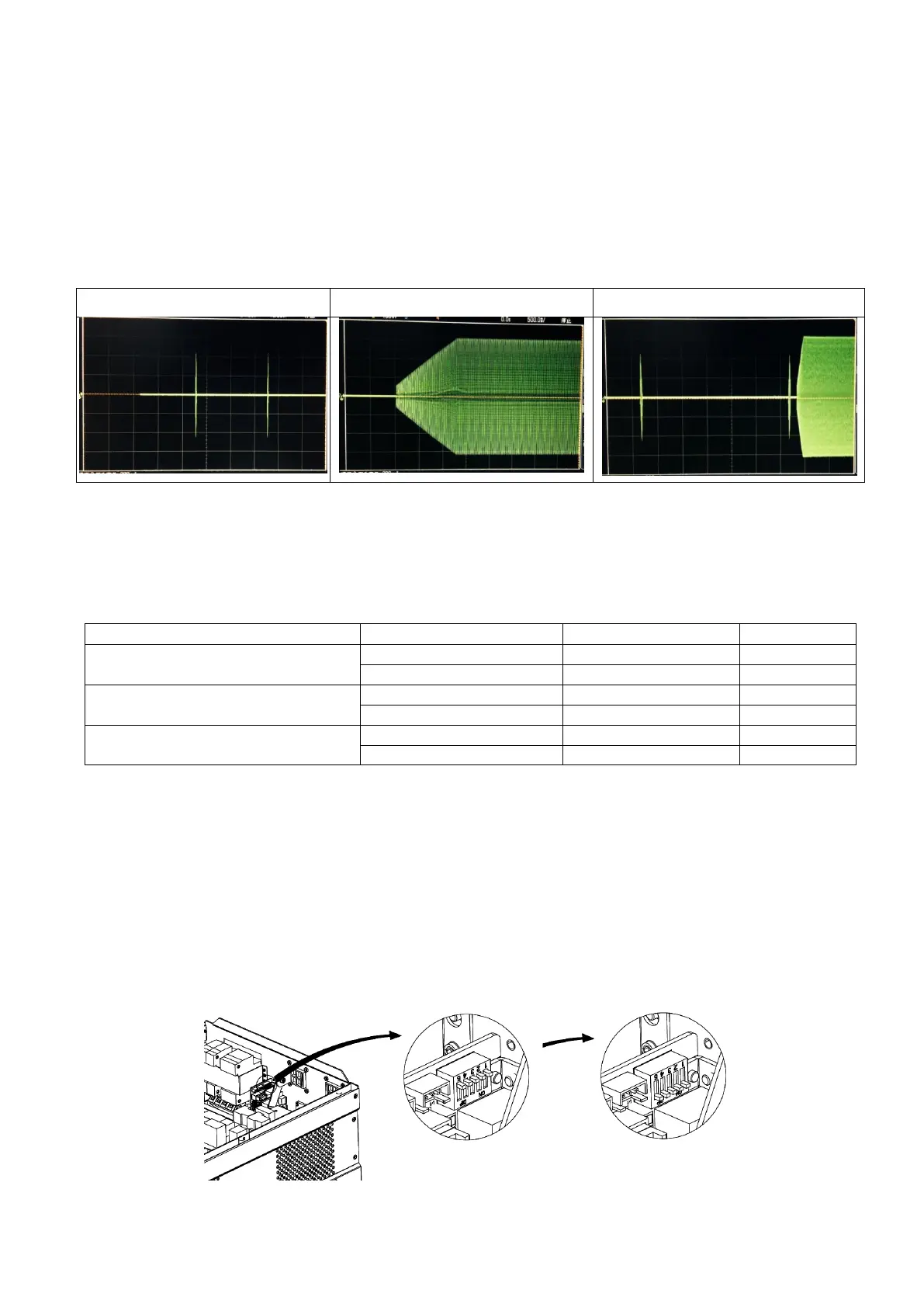 When DC input voltage drops to Low DC Warning Voltage OR Low DC Warning SOC, the output Voltage will be derated 10V.