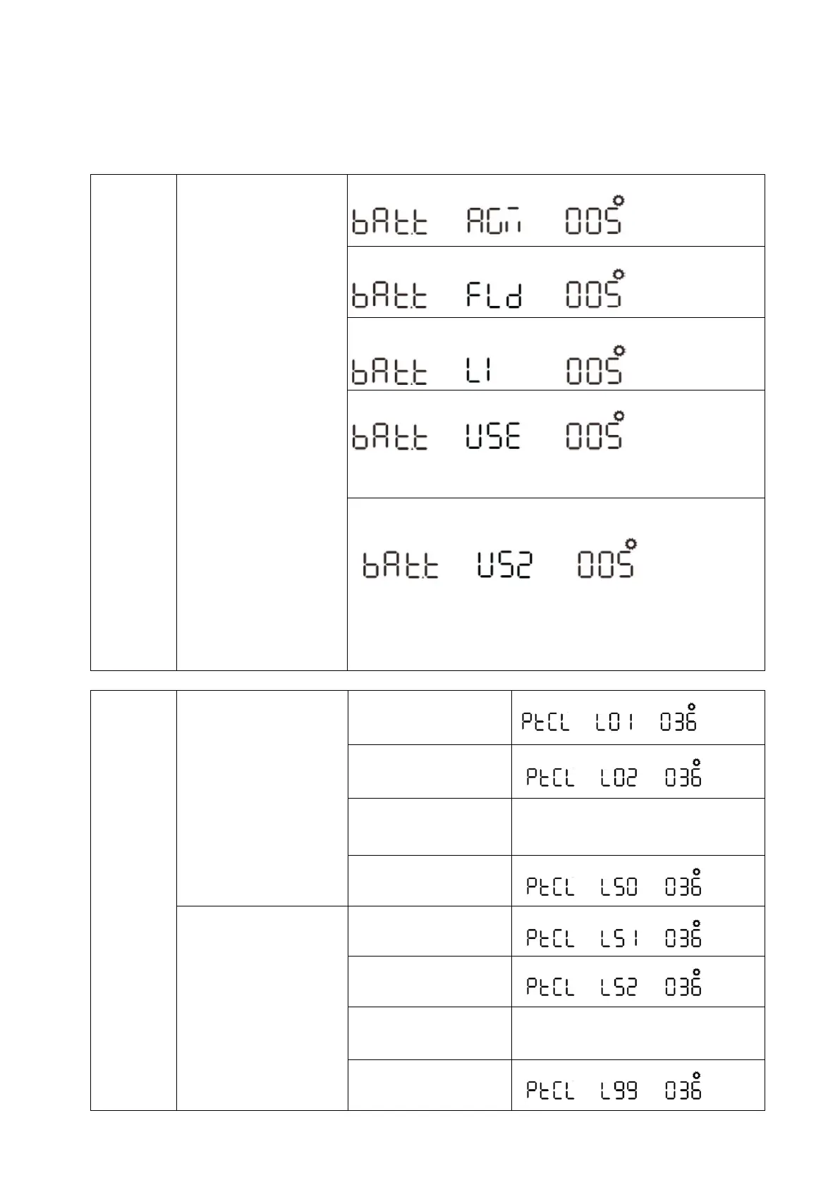 DC cut-off voltage can be set up in program 19, 20 and 21. It is
