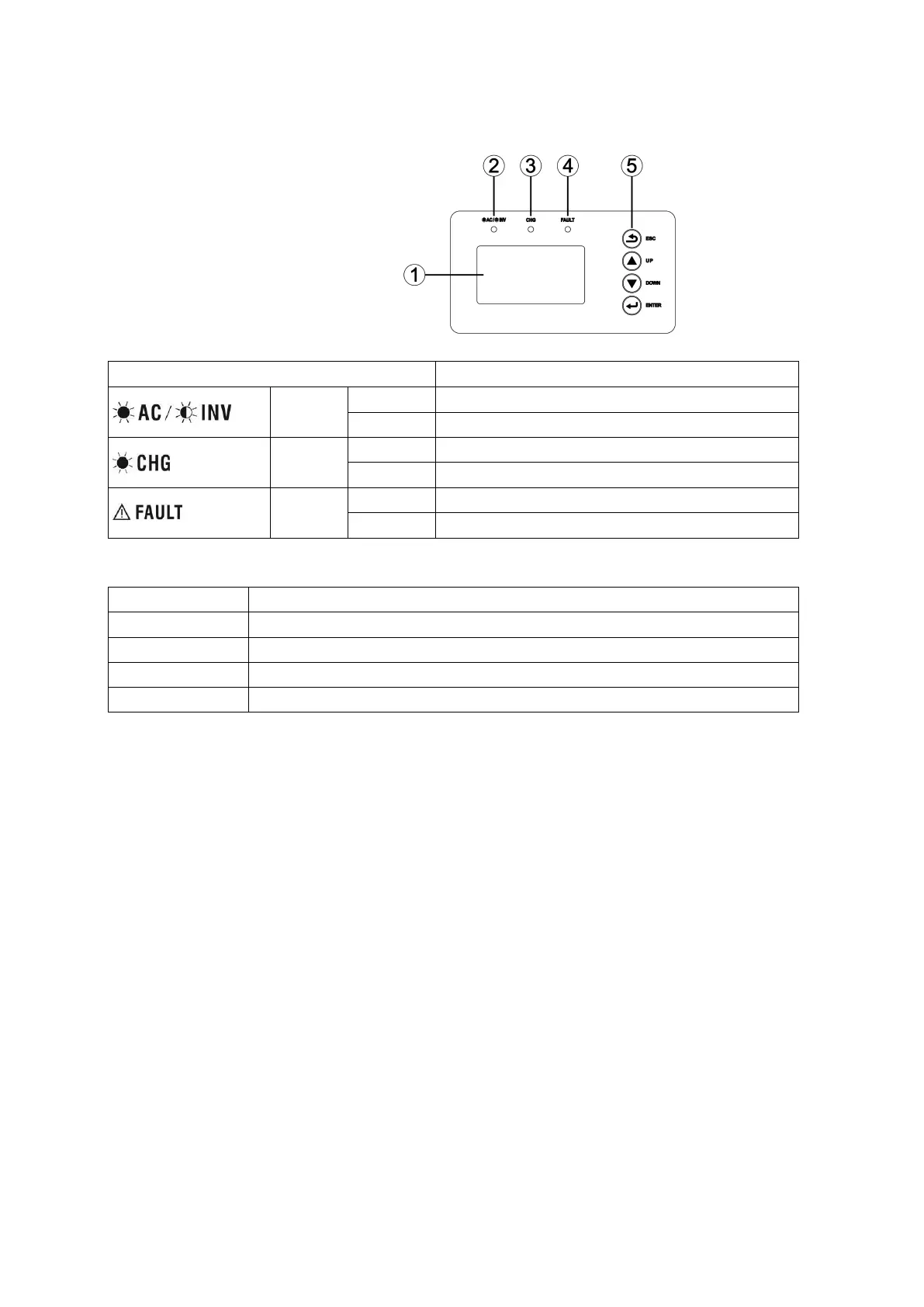 The operation and display panel, shown in below chart, is on the front panel of the inverter. It includes