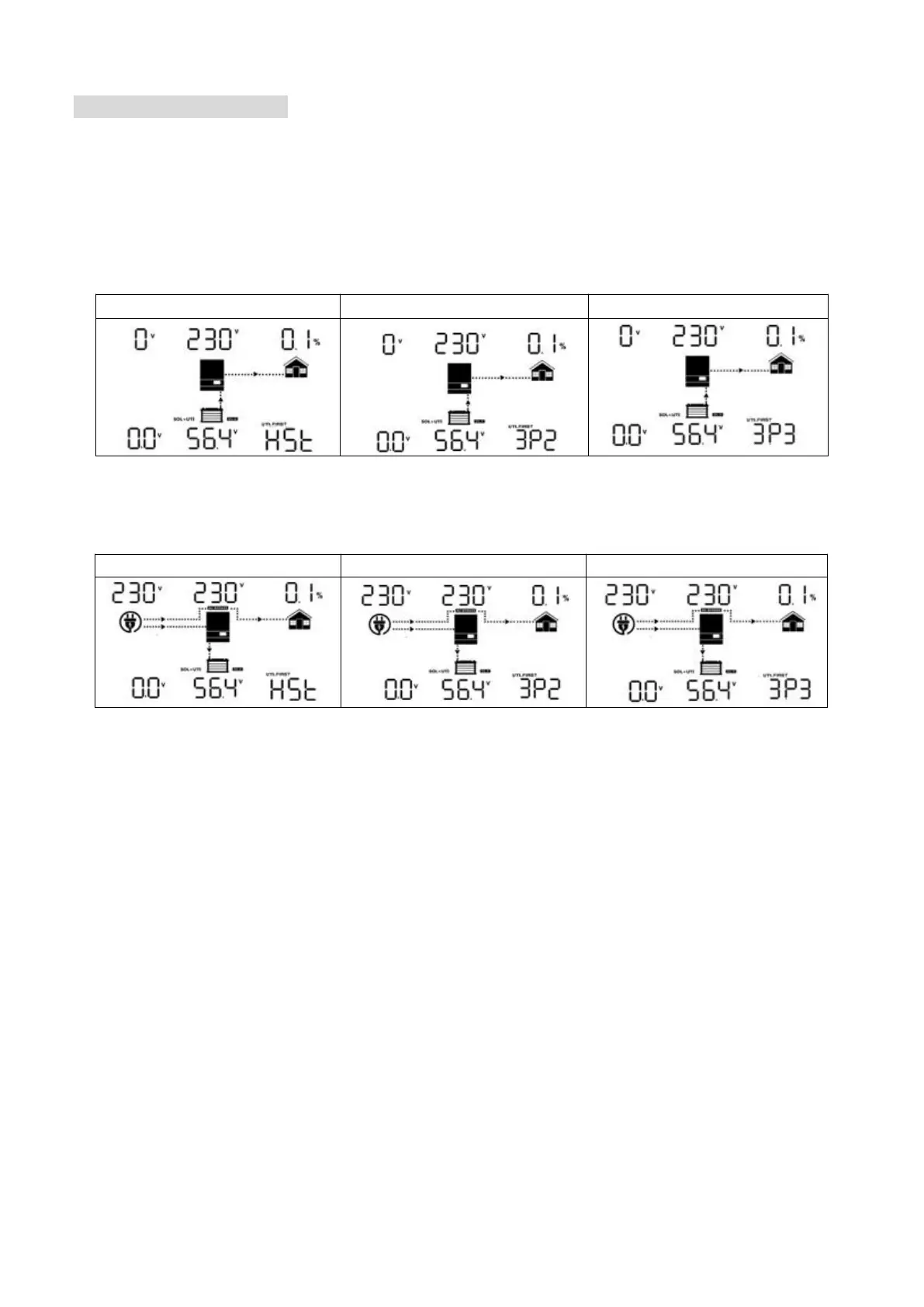 L1-phase, the LCD of the HOST inverter will show as “HST”, the rest of L1-phase inverters will show as “3P1”.
