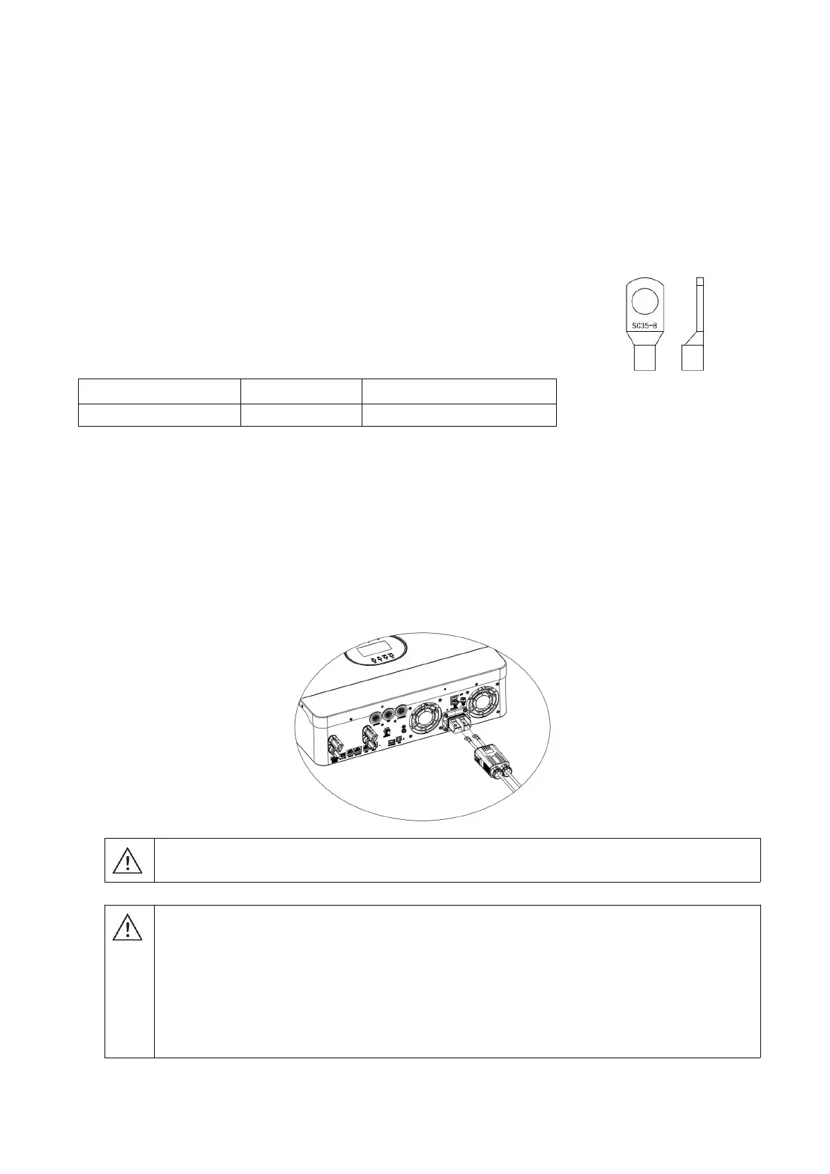 cable flatly into battery connector of inverter and make sure the bolts are tightened with torque of 2Nm.