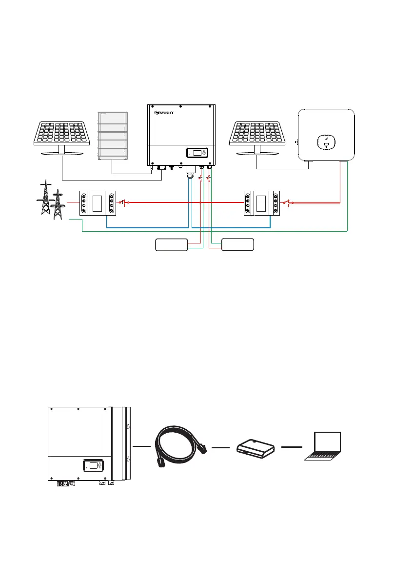 of the inverter and the communication cable to the 485-1/485-2 port. For details about