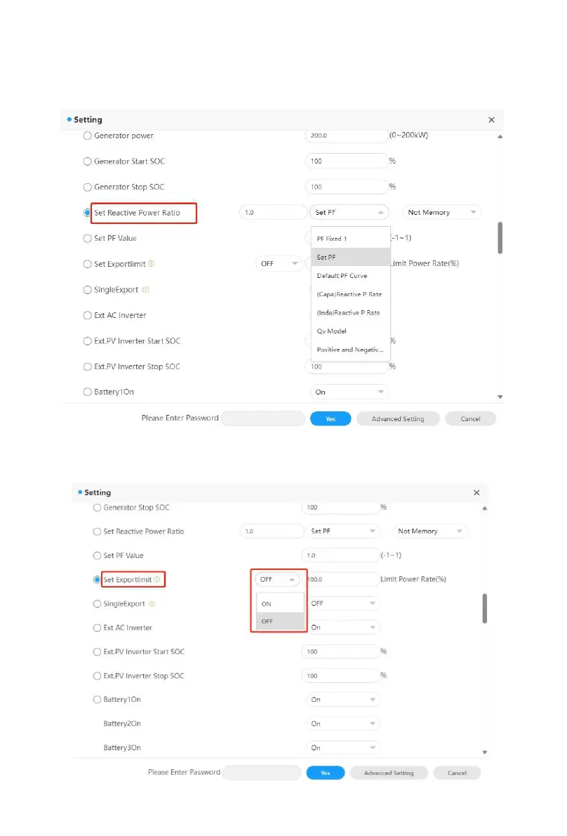 10.21) Set Reactive Power: you can set the corresponding PF mode and select