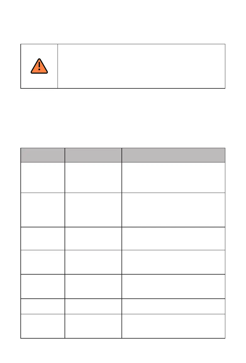 warning codes are shown in Table 9.1: