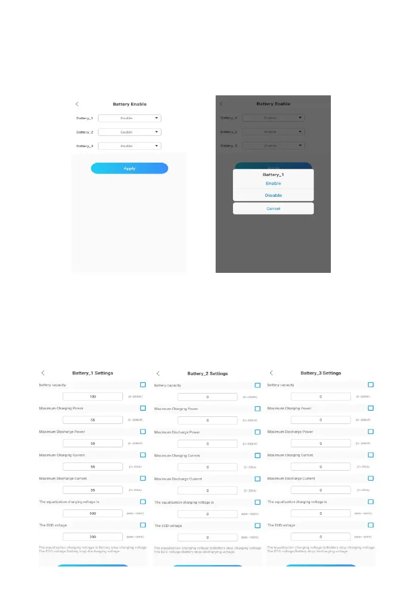 Tap Control > Battery_1/Battery_2/Battery_3 Settings, you can set the Battery-