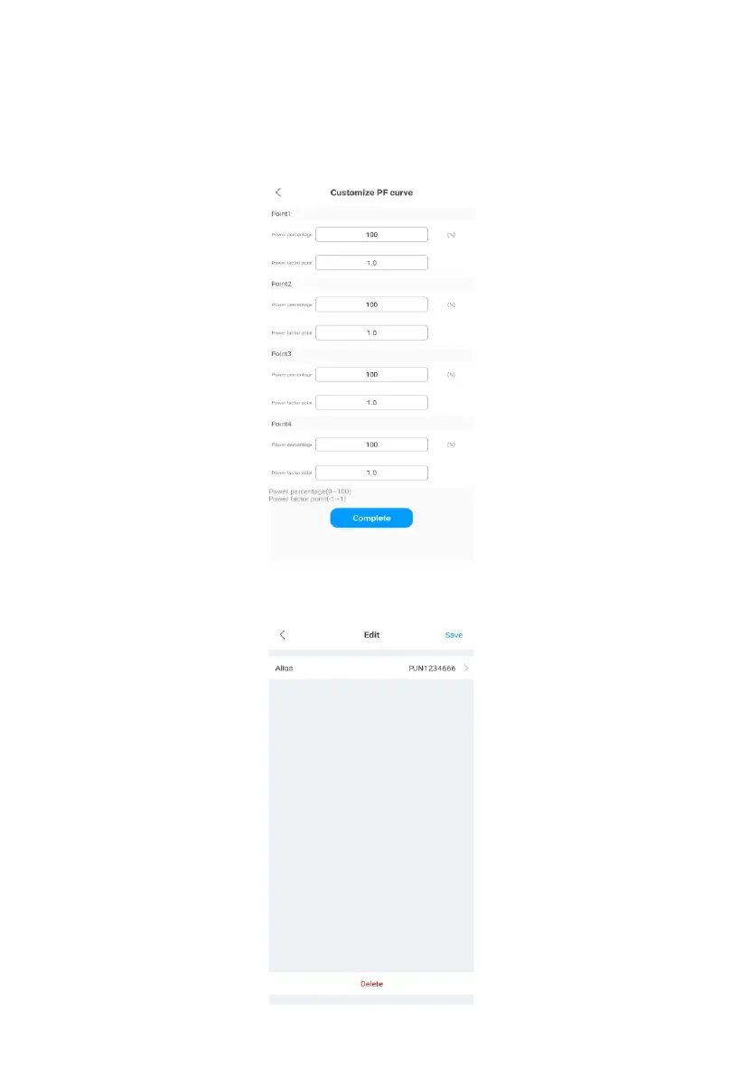 Tap Control > Customize PF curve, you can set the power percentage and the