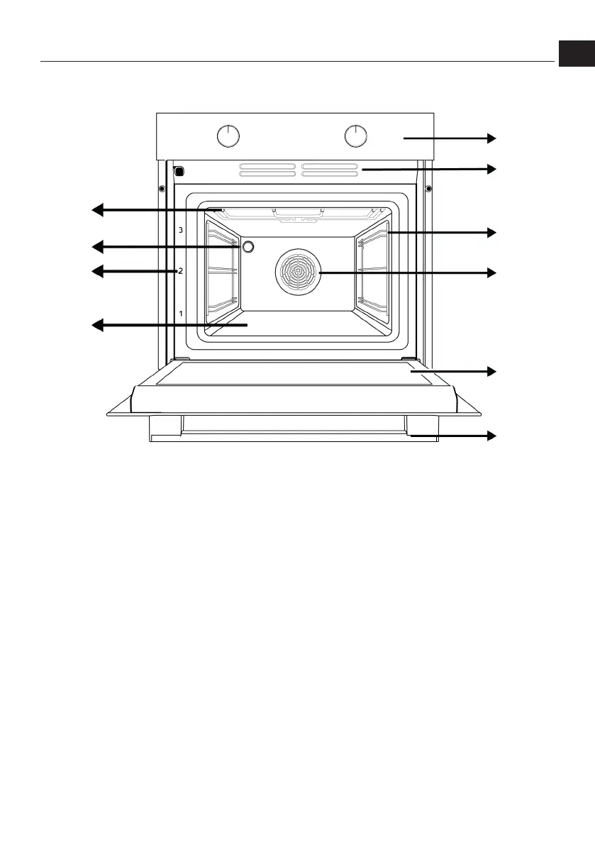 7 Lower heater (under the steel plate) 8 Shelf positions