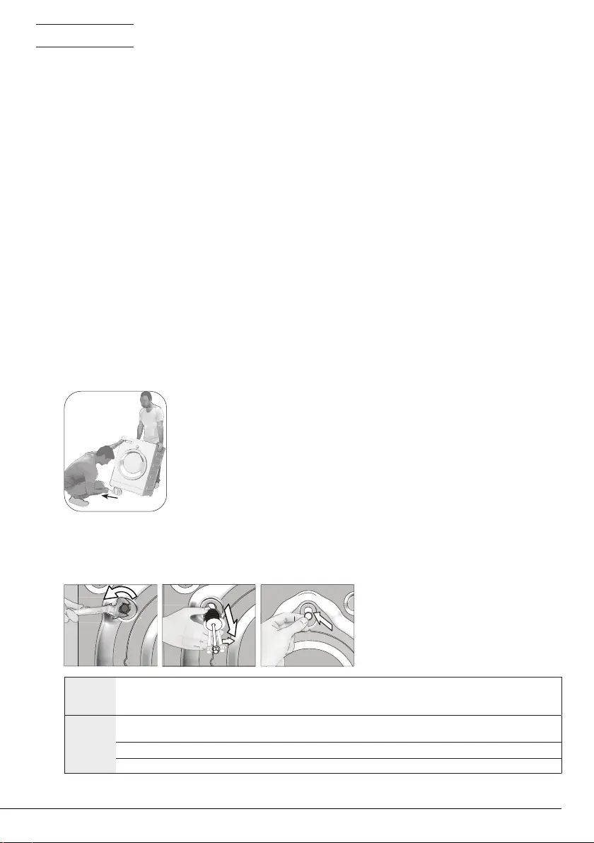 CAUTION: Remove the transportation safety bolts before operating the washing machine! Otherwise, the product will be
