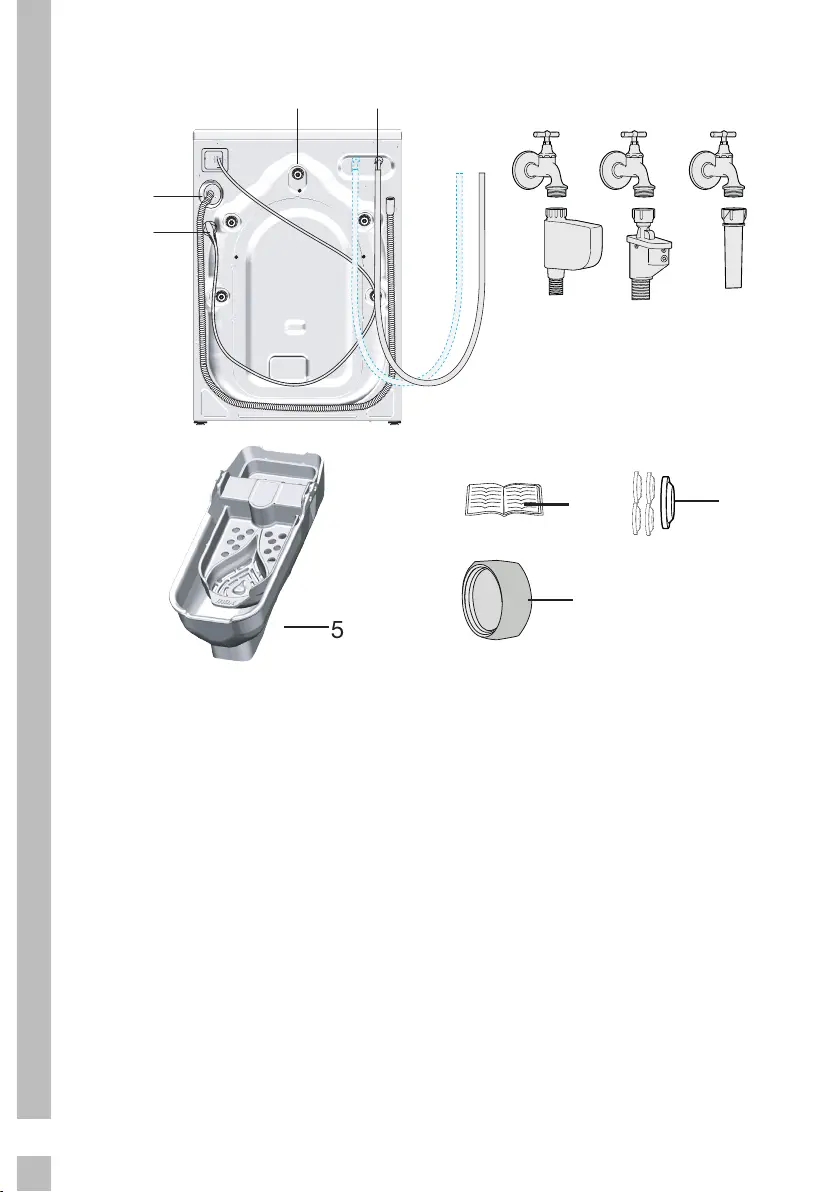 4- Mains water inlet hose (One of the following filter types is used for the mains