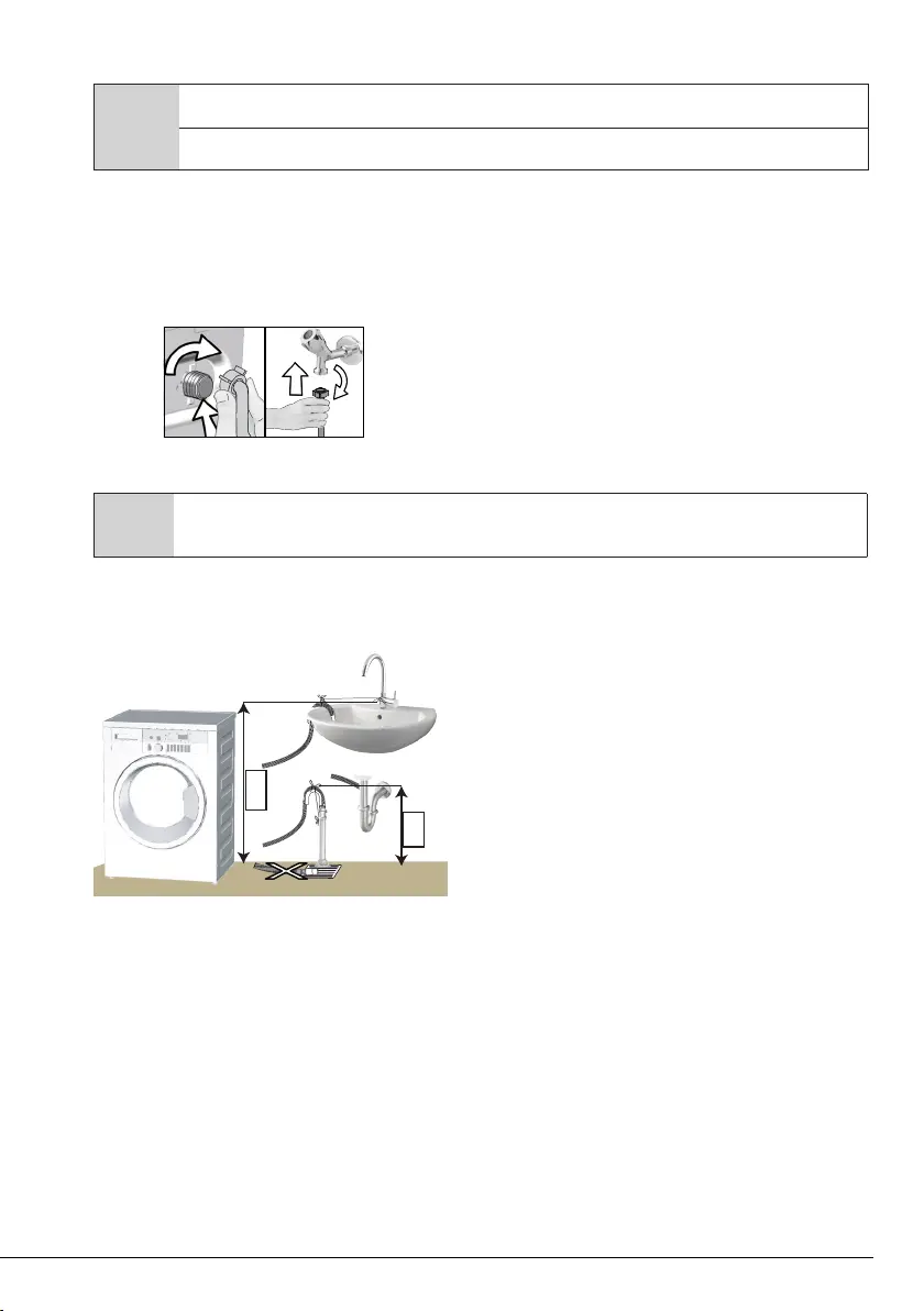 • Attach the end of the drain hose directly to waste water drain, washbasin or bathtub.