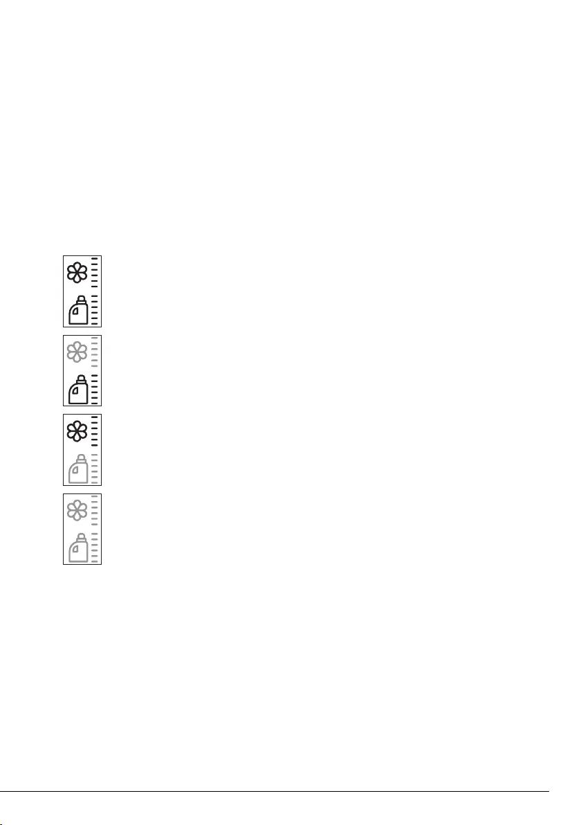 • When the detergent or the softener put inside the detergent drawer finishes, the dosage symbol in the