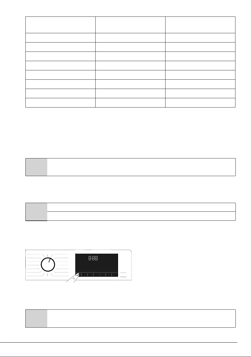 Whenever a new programme is selected, the recommended temperature for the programme appears on the temperature