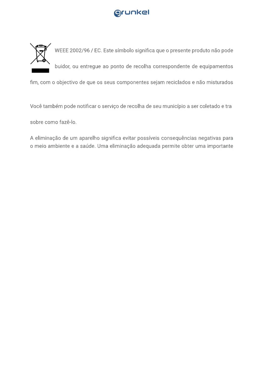 trodomésticos separadamente, um símbolo de uma lixeira riscada aparece no produto.