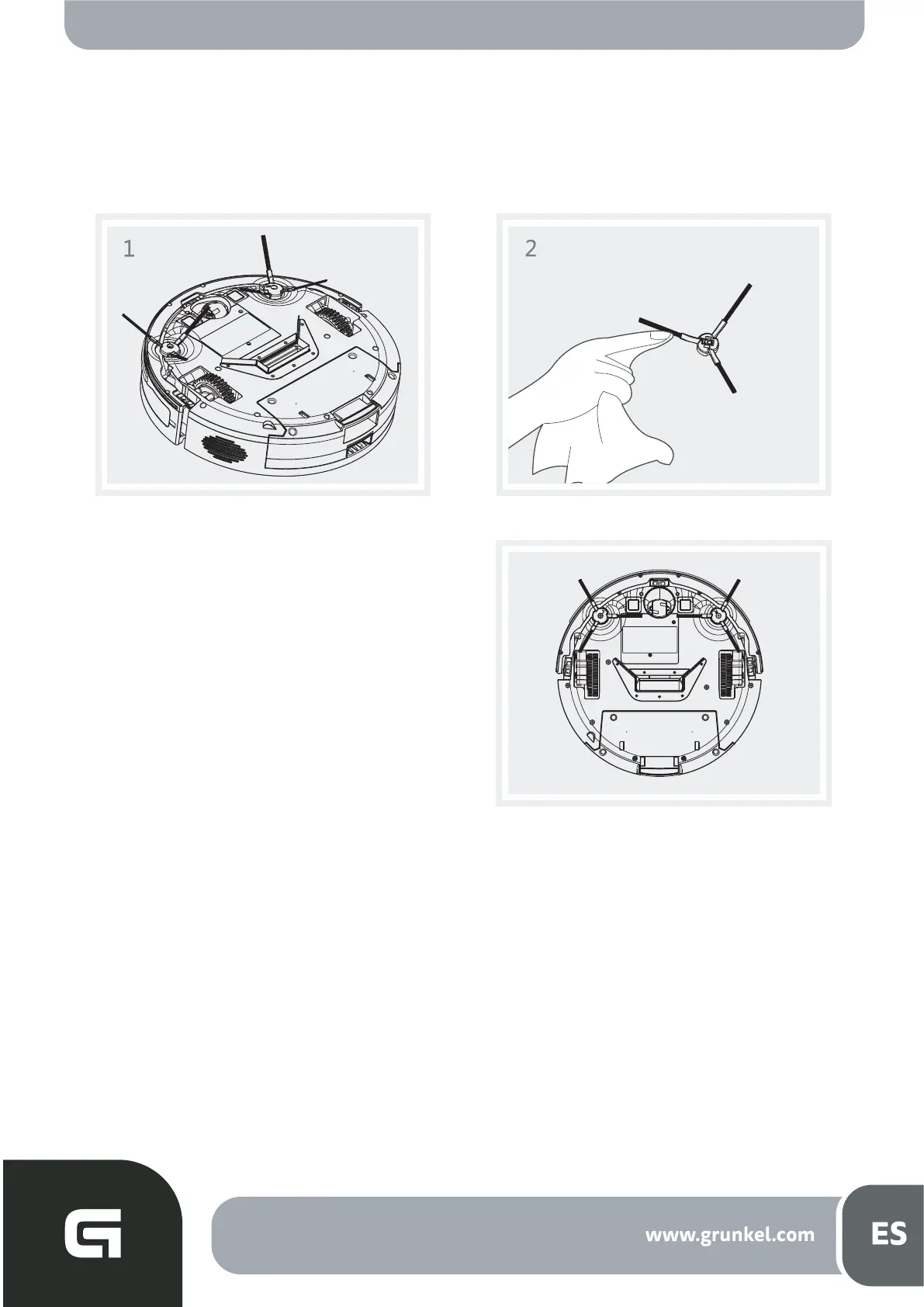 Apague el robot. Extraiga los cepillos laterales. Limpie con un paño seco y limpio.