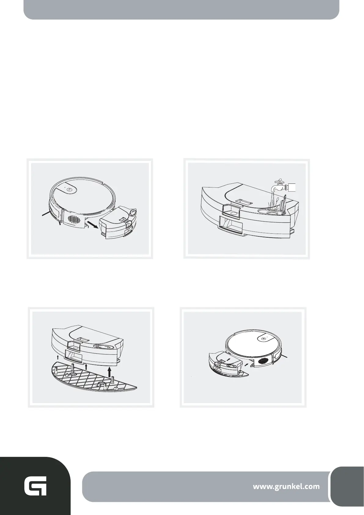 O depósito de água, juntamente com a esfregona, está instalado na parte de trás do robot.