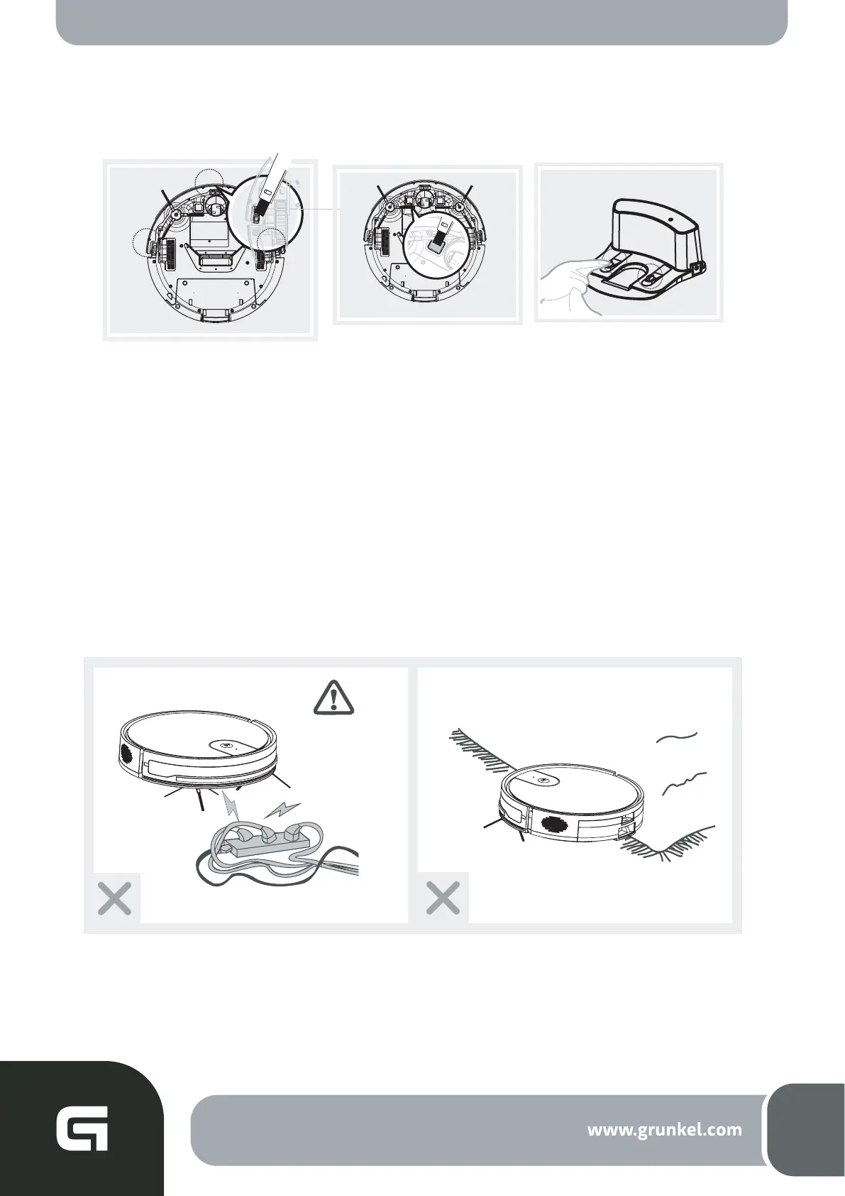 novamente. Carregue o robô na base durante três minutos; repita este processo 3 vezes e,