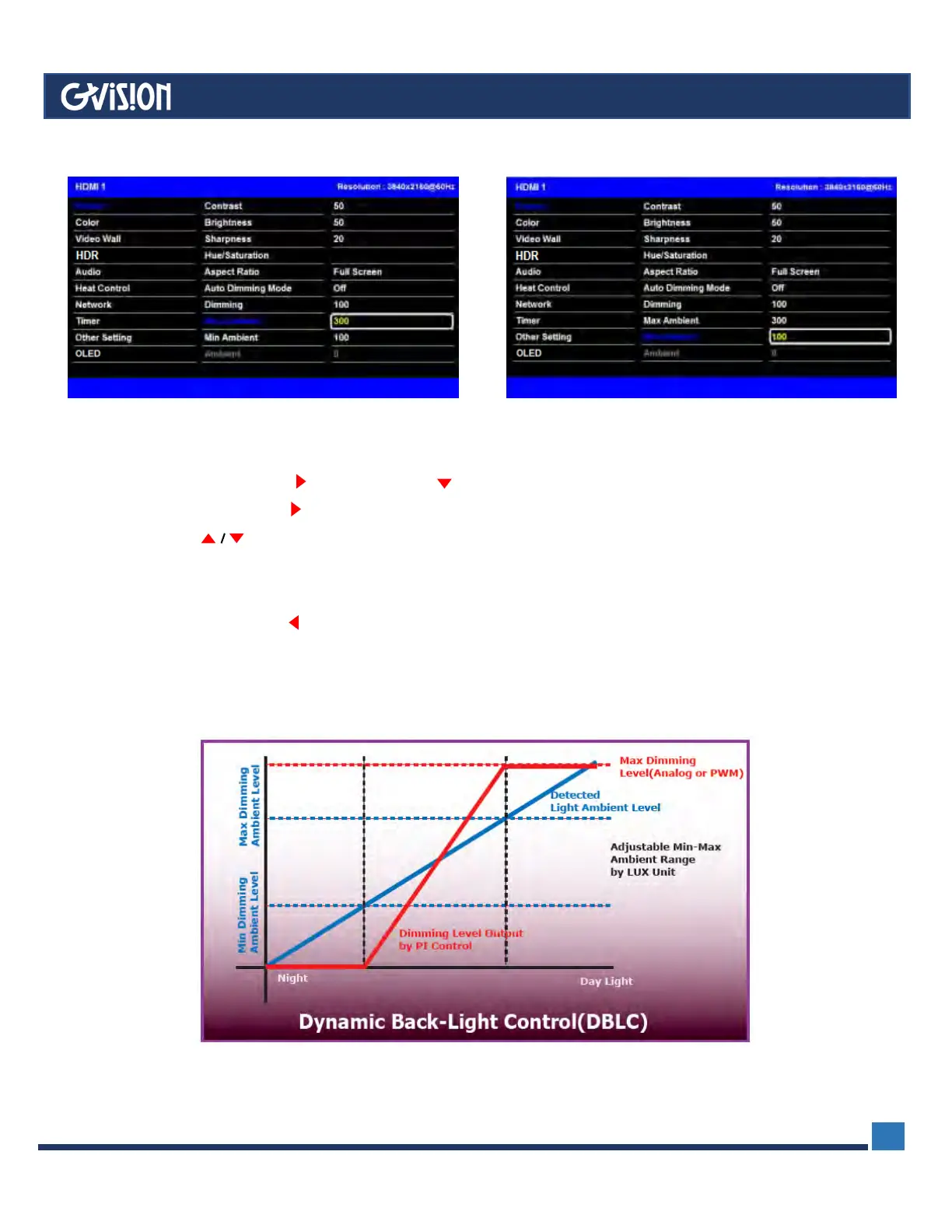 - Adjusts detected light ambient to set the maximum(minimum) dimming