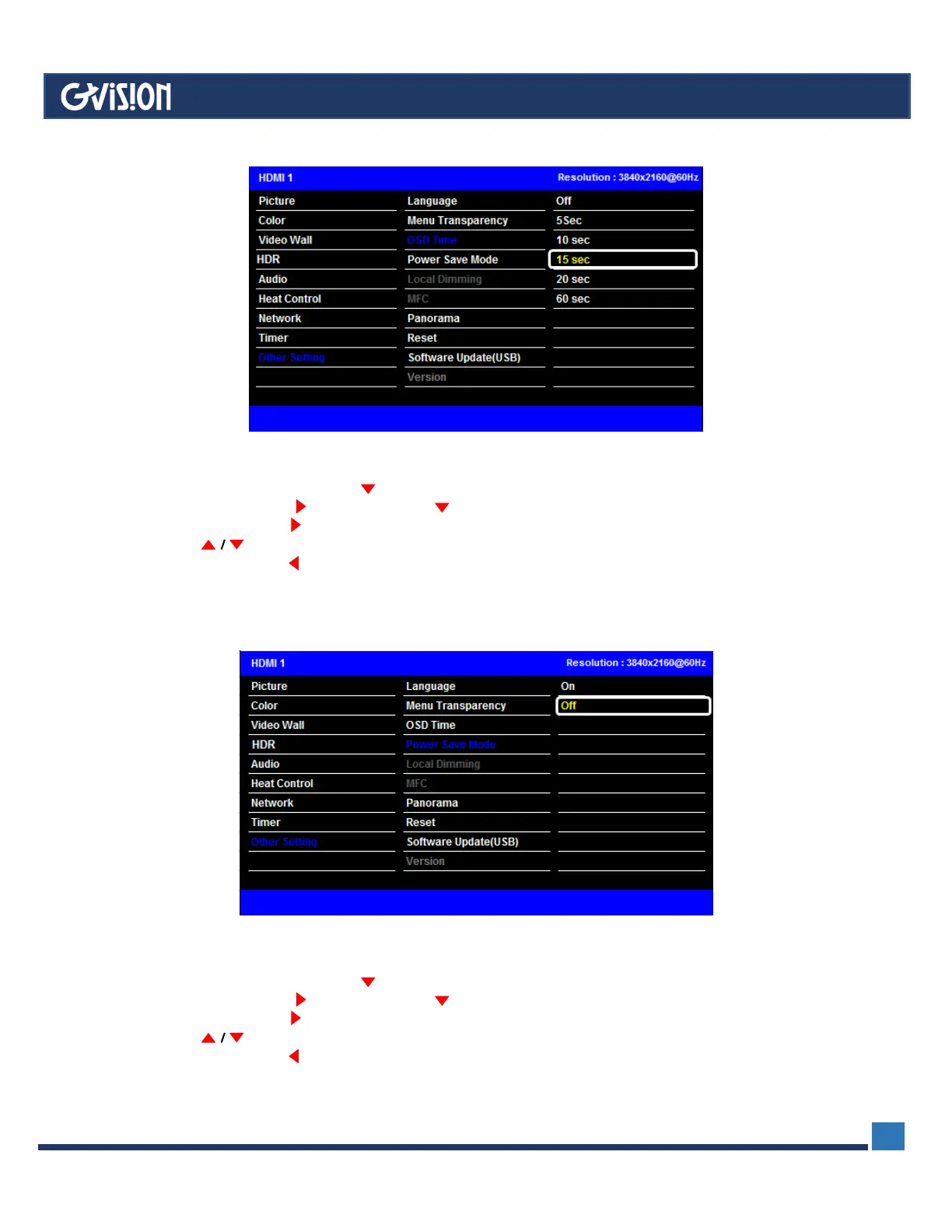 - Set the screen duration time of OSD