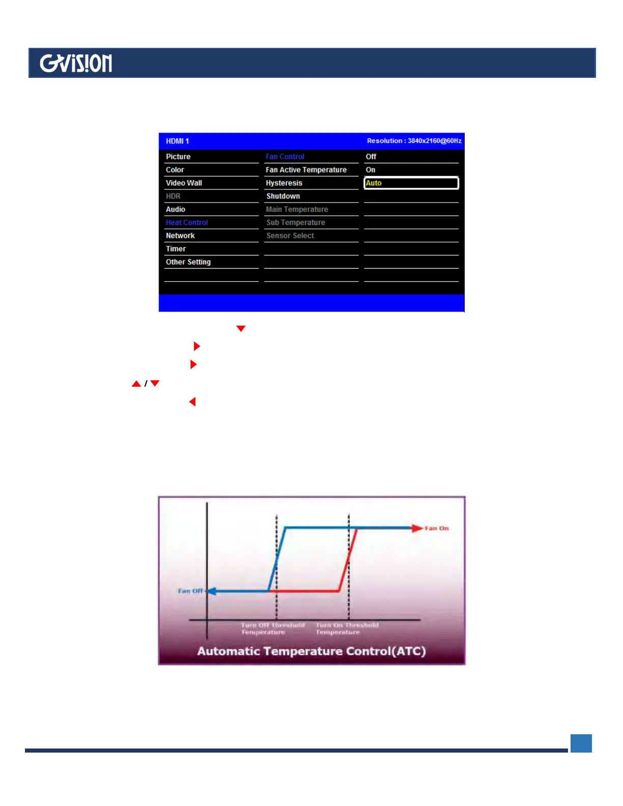 1. Press the MENU button and then button to select the Heat Control Settings.