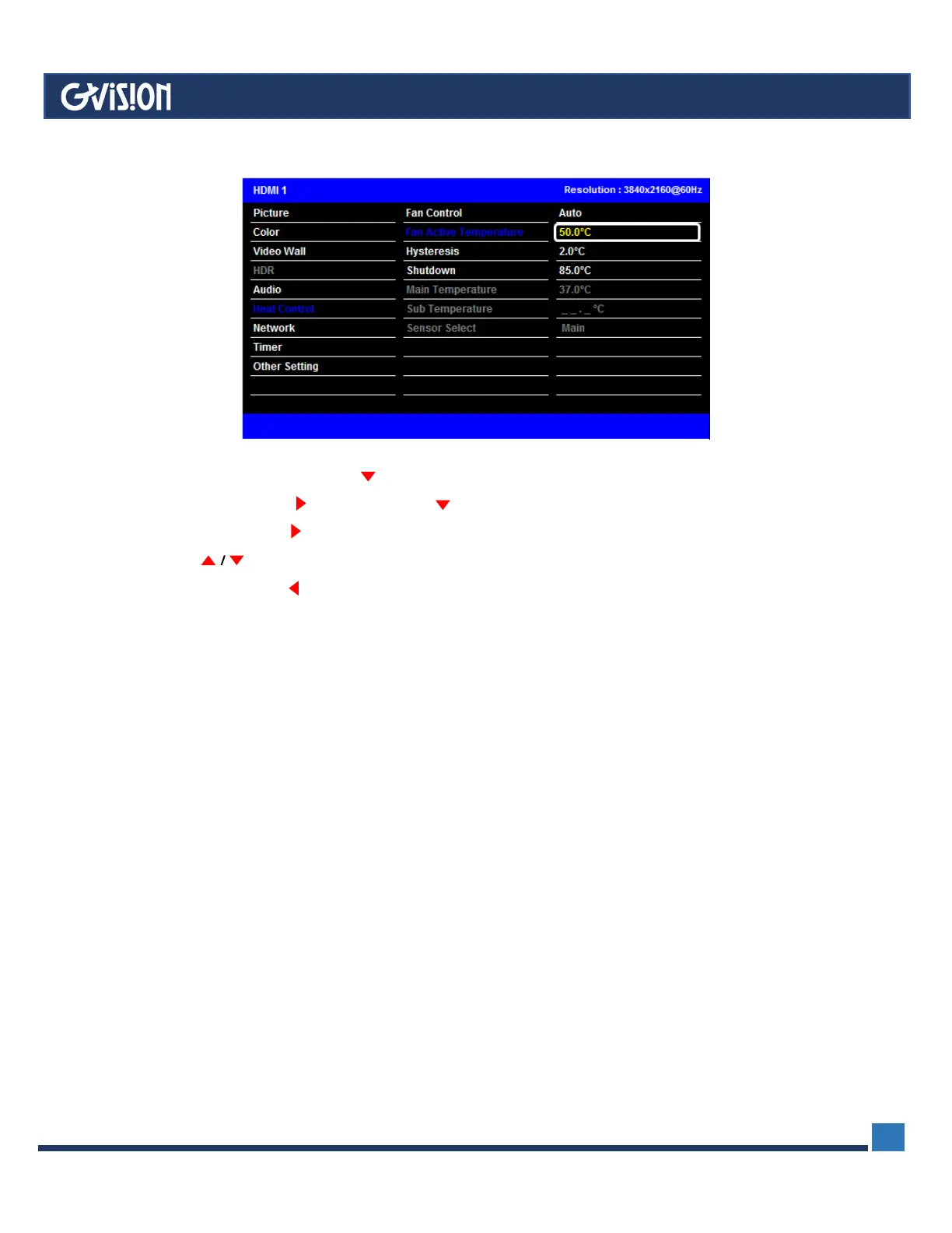 when current temperature reaches the shutdown temp, the monitor enters power down mode.