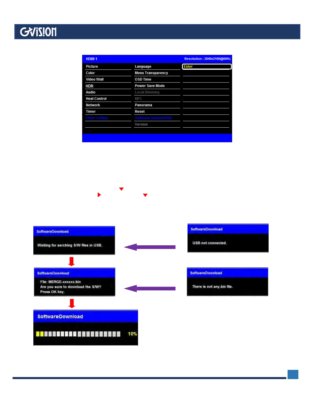 1. Save the update file to a USB stick. (ex) mergy_151223.bin