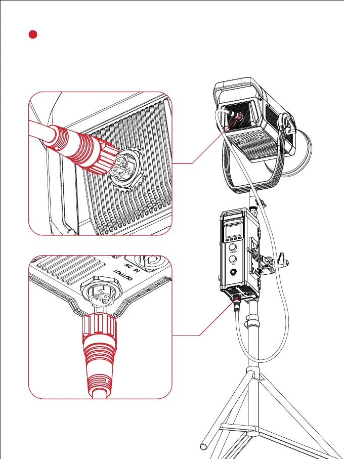 As shown in the figure below, use the control wire to connect the light and the