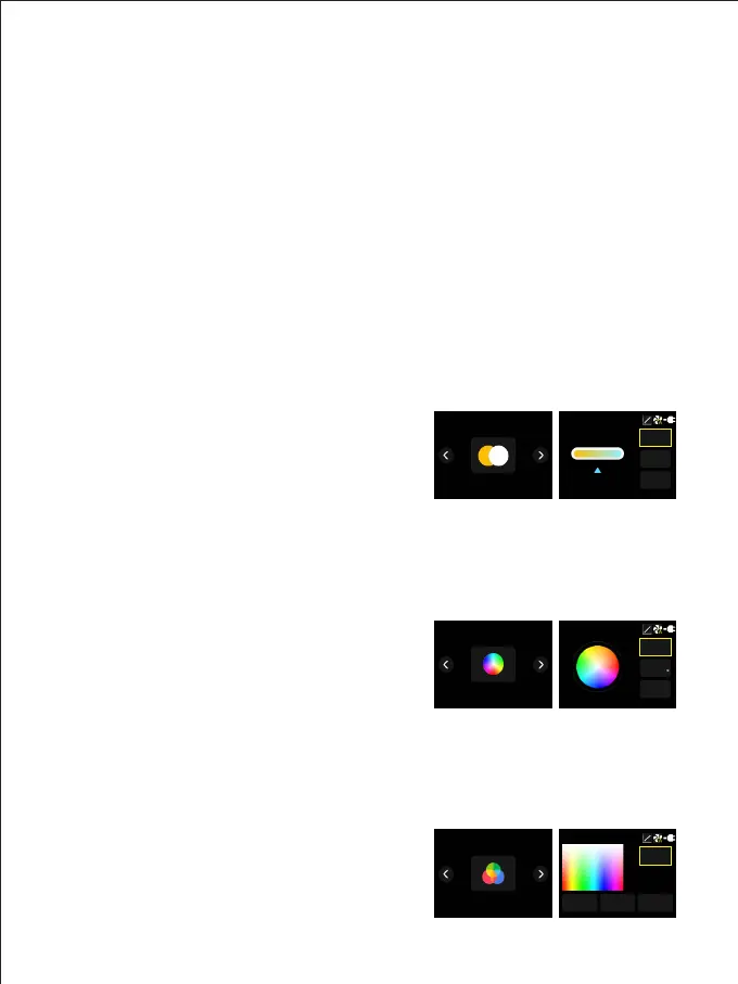 By adjusting the red ( R ), green ( G ), and blue ( B ) light settings, the color of the light