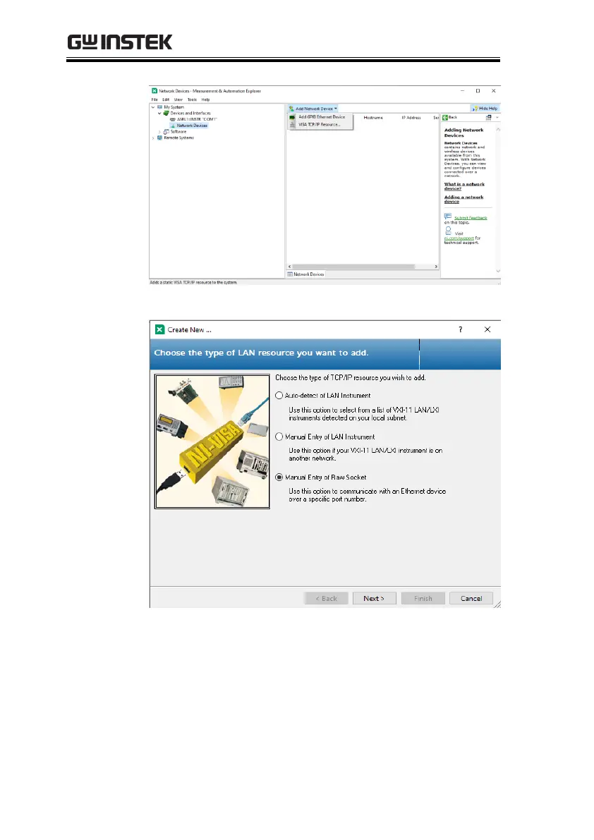 3. Press Add New Network Device>Visa TCP/IP Resource…