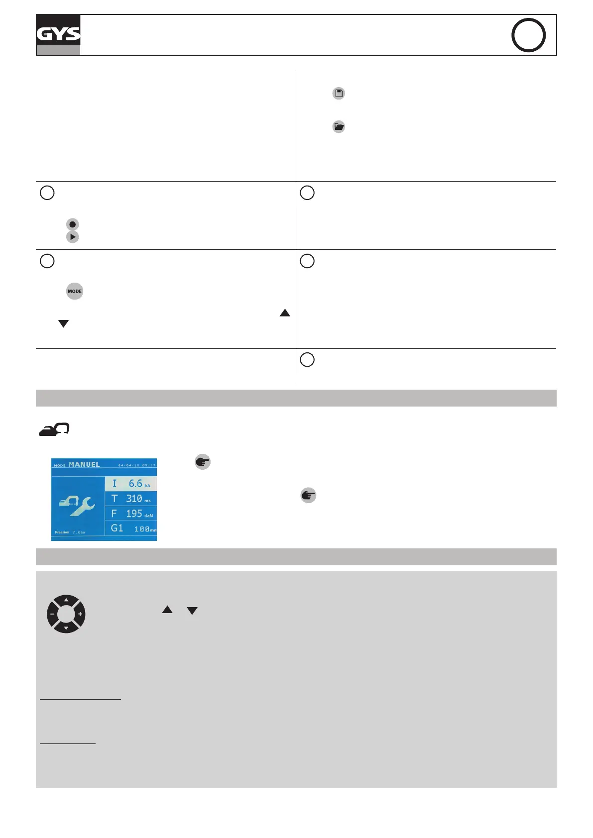 Para o GYSPOT BP.LG, Sempre mude para este modo para parar a bomba ao trocar os braços. O eletrodo