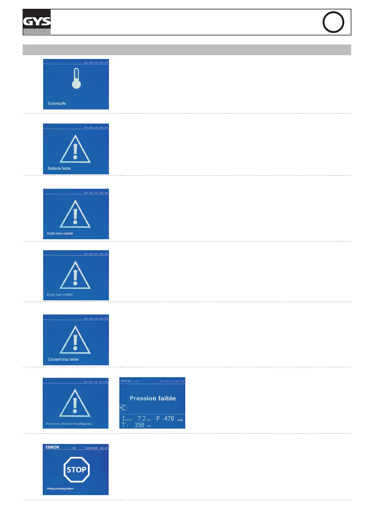 vez efetuada o ponto uma mensagem de aviso de «corrente fraca» que o convida a vericar o ponto.