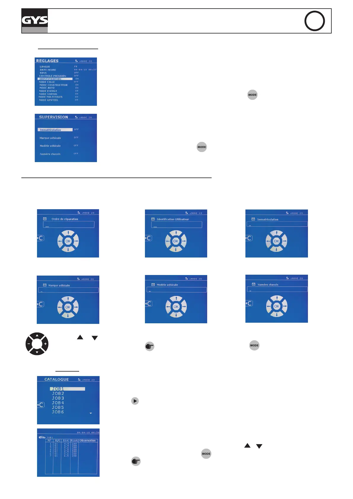 A tecla permite-lhe consultar as ordens de reparação, O número da página aparece (13 maxi)