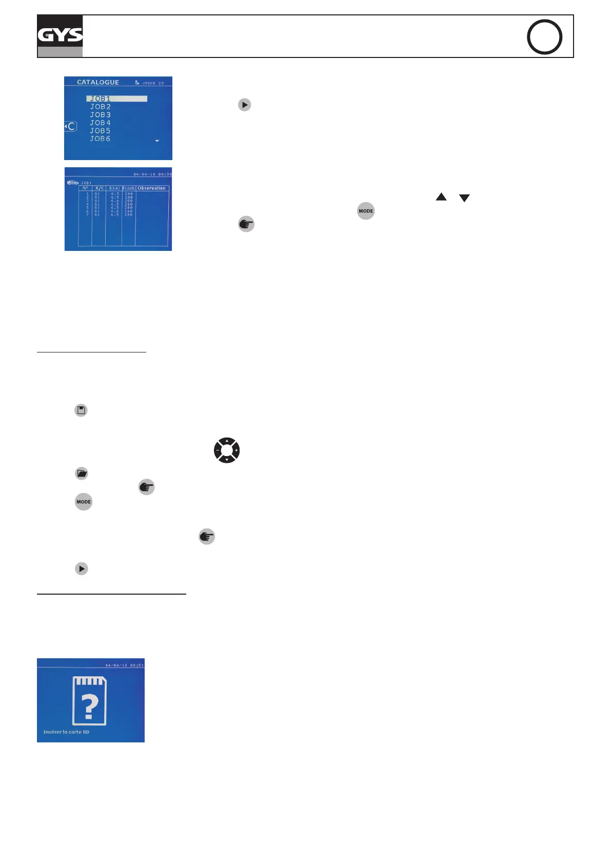 • L’ensemble des ordres de réparation est mémorisé dans le chier catalog.GYS.