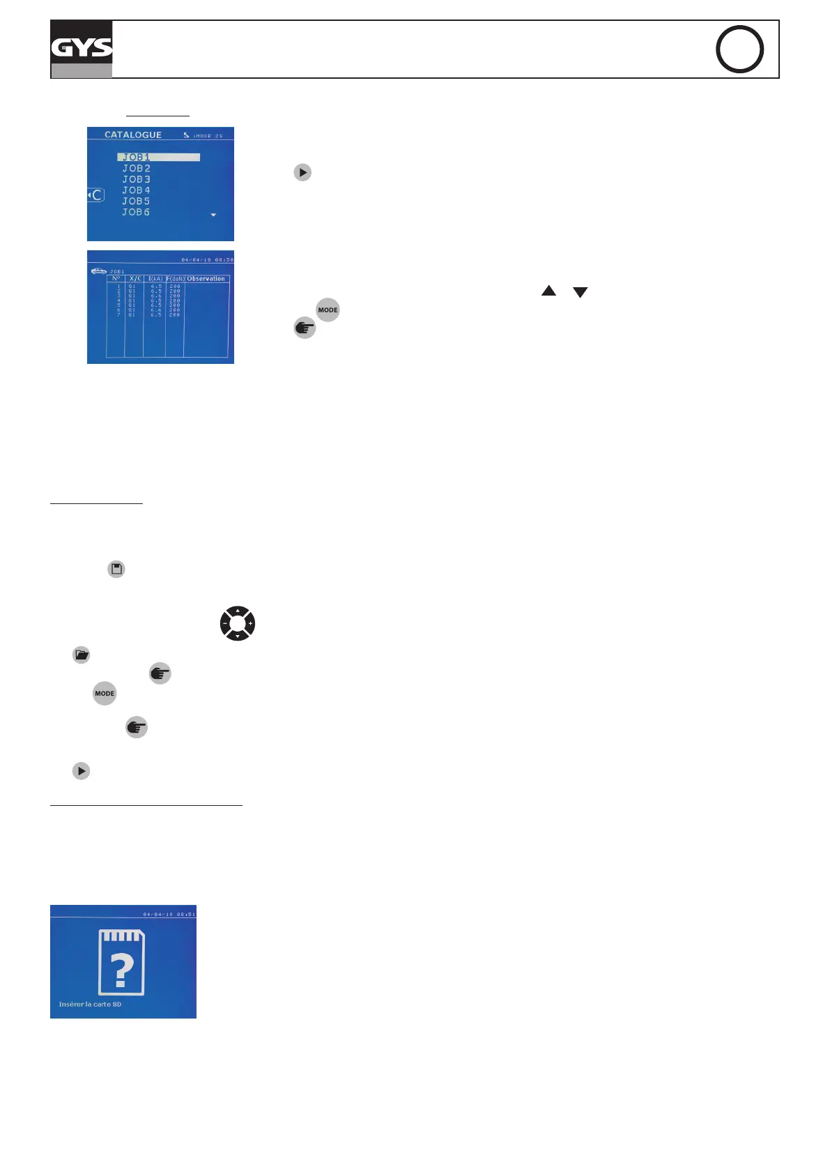 • The GYSPOT software for editing parameters on a PC is stored on the SD memory card.