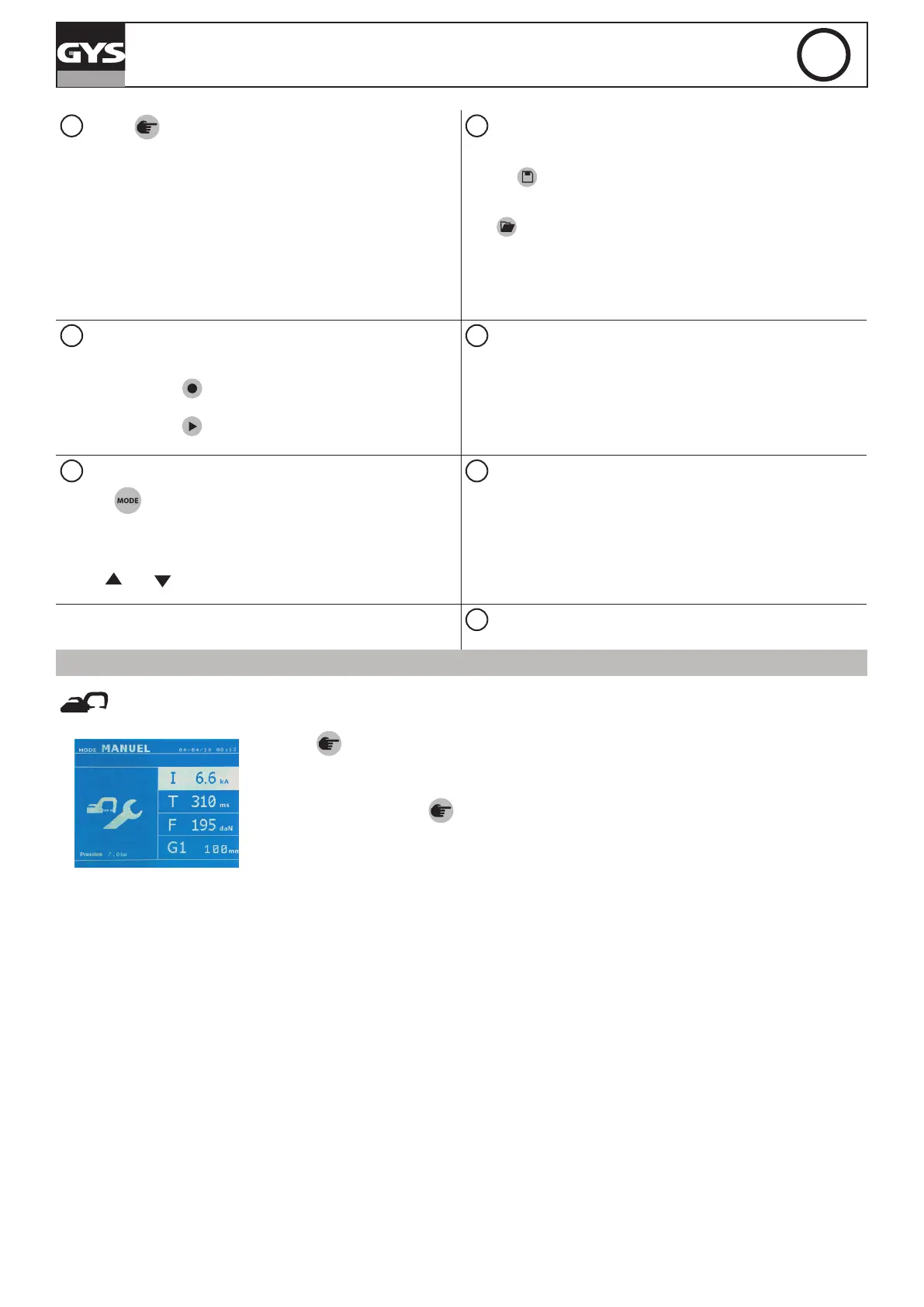 Parameter im Gerätespeicher ab. (Modus, Blechstärke, Schweißstrom,