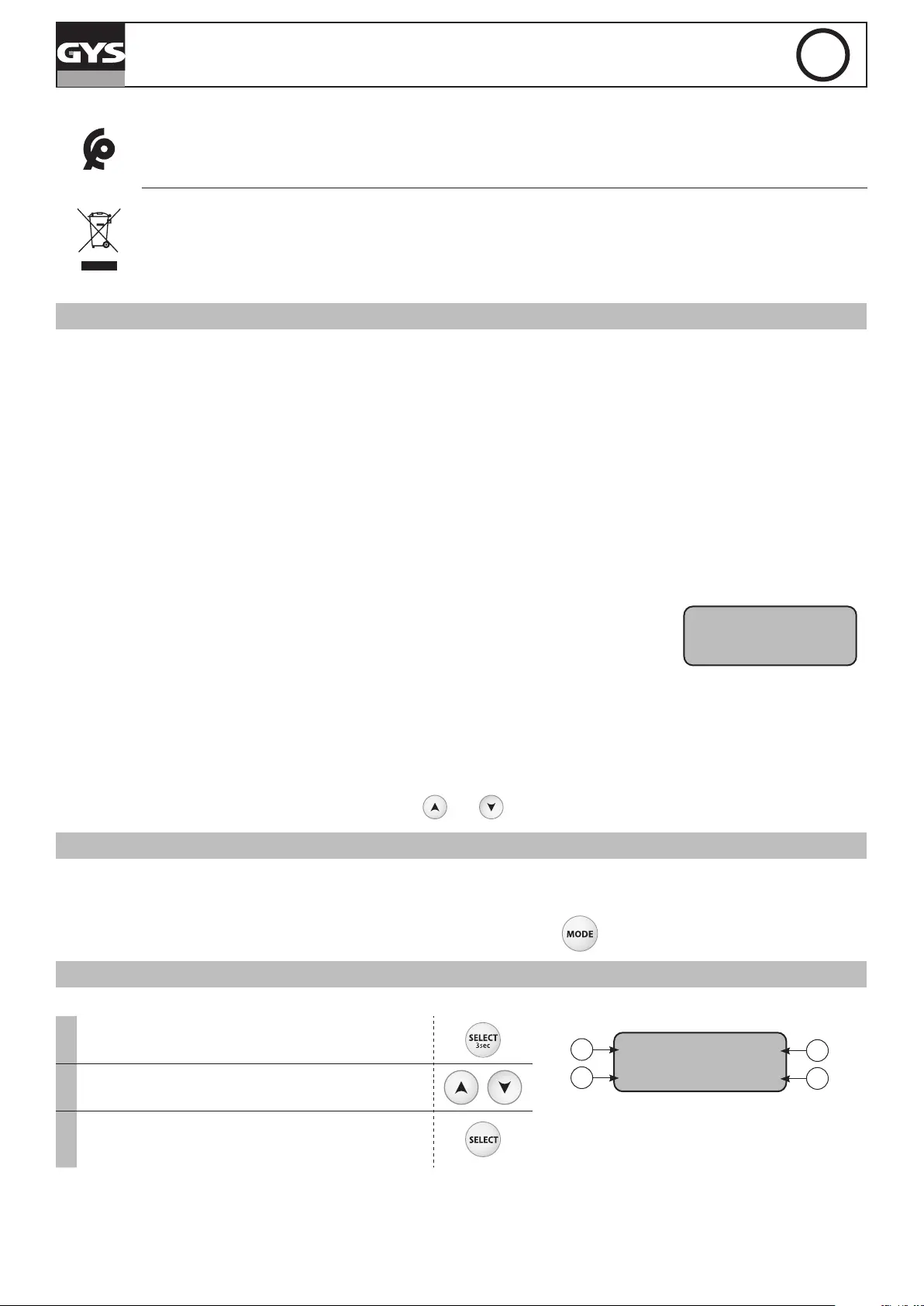 Es ist möglich, die Tasten des GYSFLASH zu sperren, wenn es in einem öentlichen Bereich oder ohne Überwachung benutzt