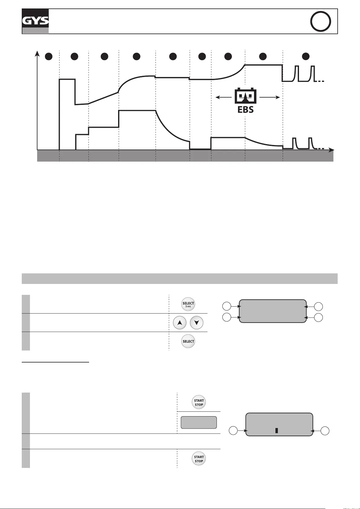 Durant le mode, votre GYSFLASH indique la tension de la batterie et le