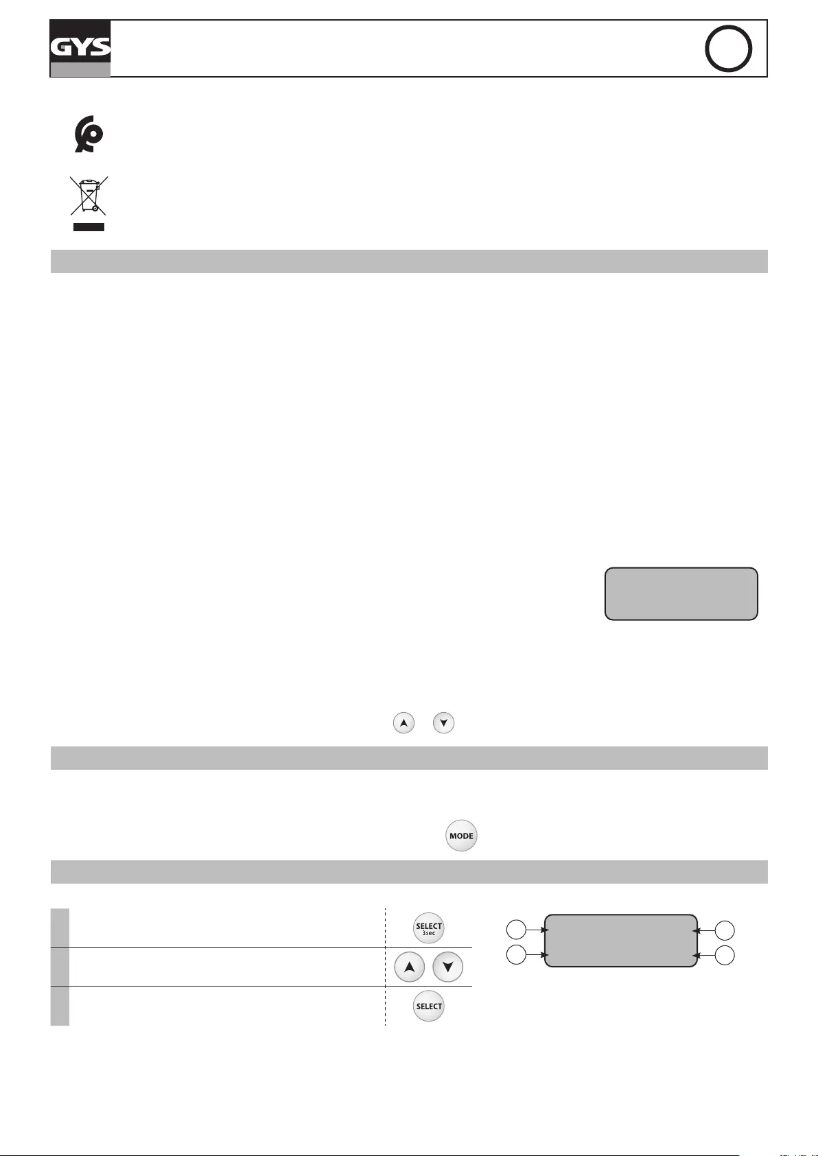 D’origine votre GYSFLASH est livré avec une conguration comprenant 4 modes :