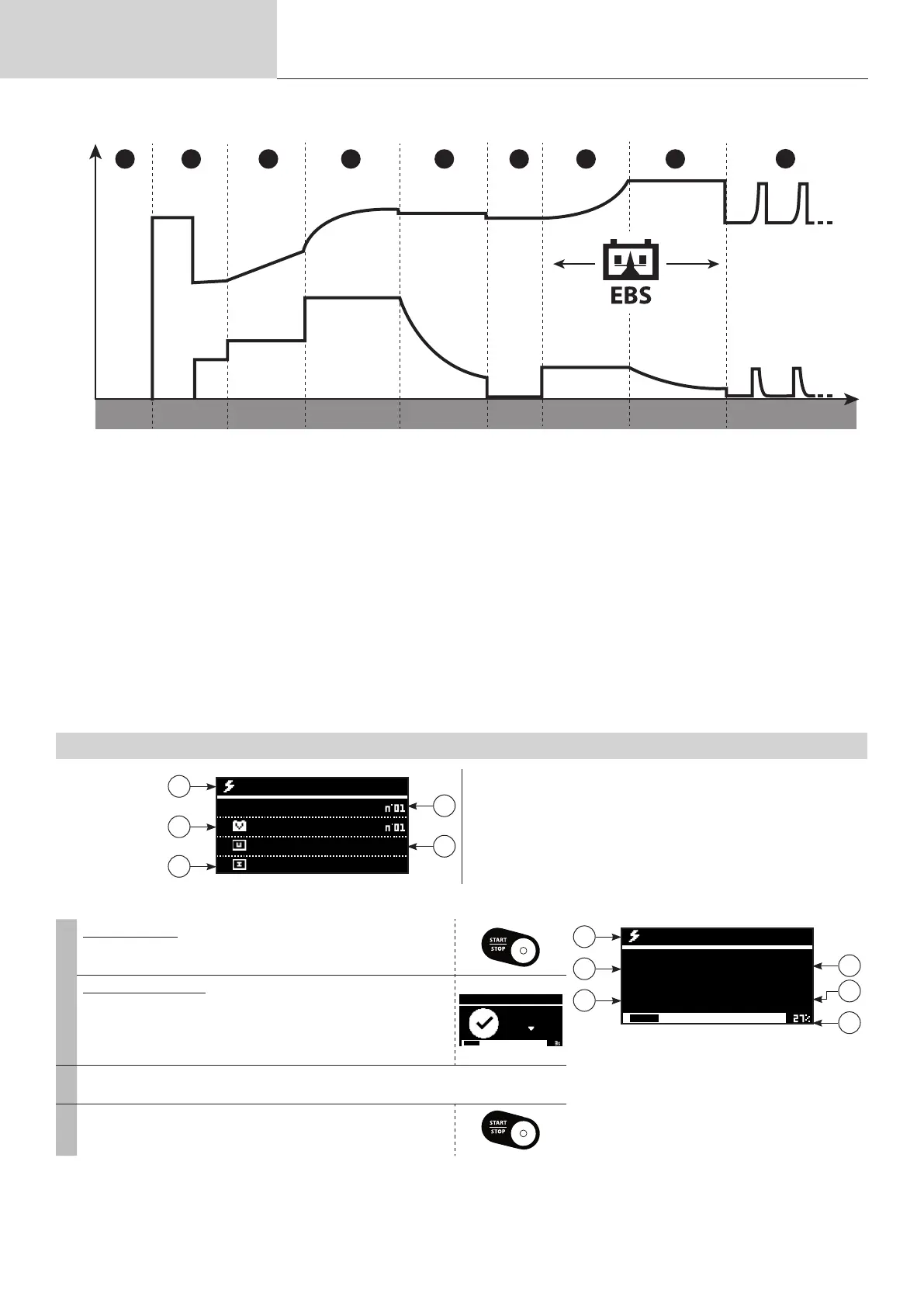 Beträgt der Strom beim Starten des Modus über 10A, ist die Batterie entladen. Das GYSFLASH lädt dann zuerst die Batterie auf.