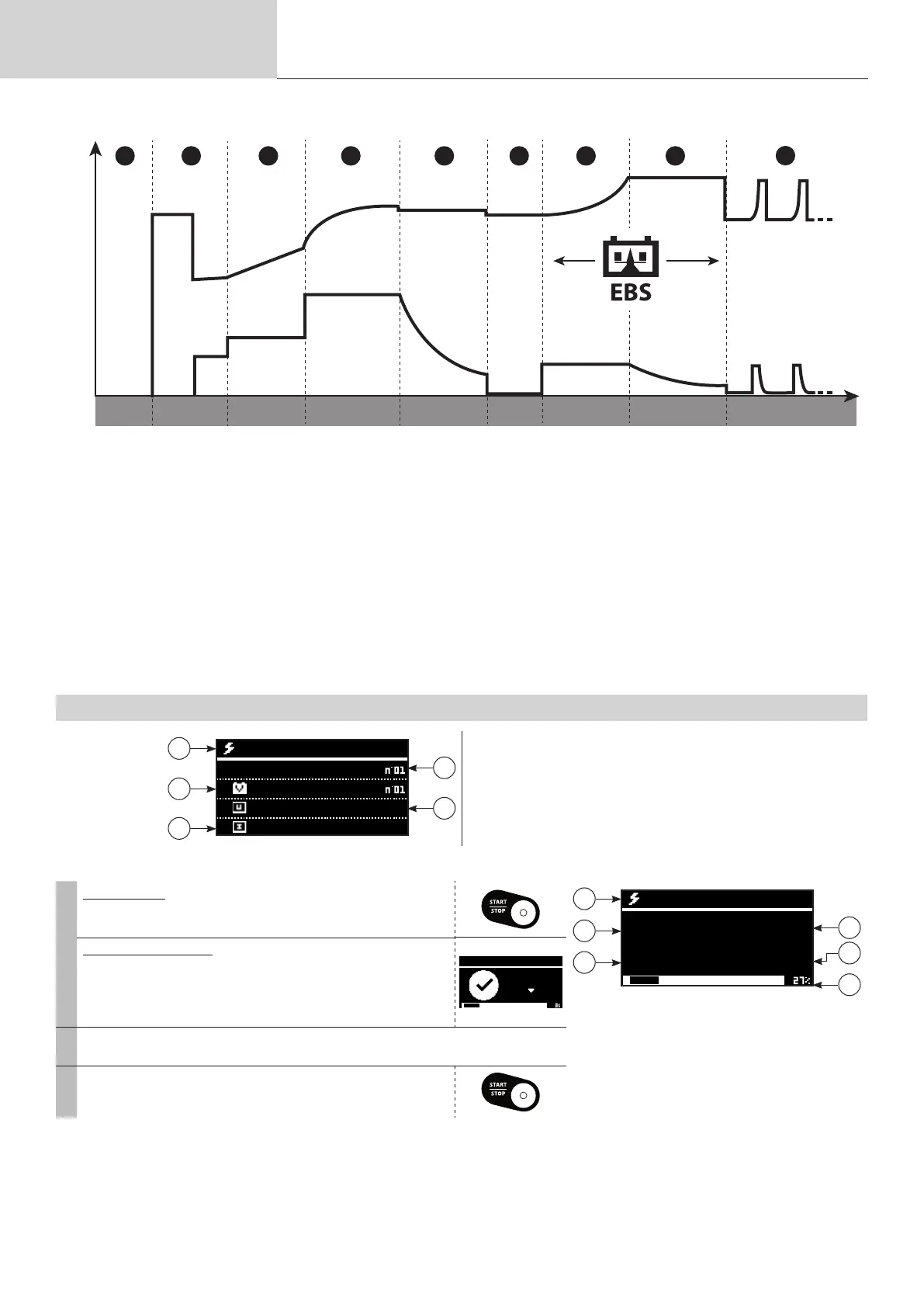 Precaución: Al iniciar un modo, si se indica una corriente superior a 10A, esto signicará que su batería está descargada. Su Gys-